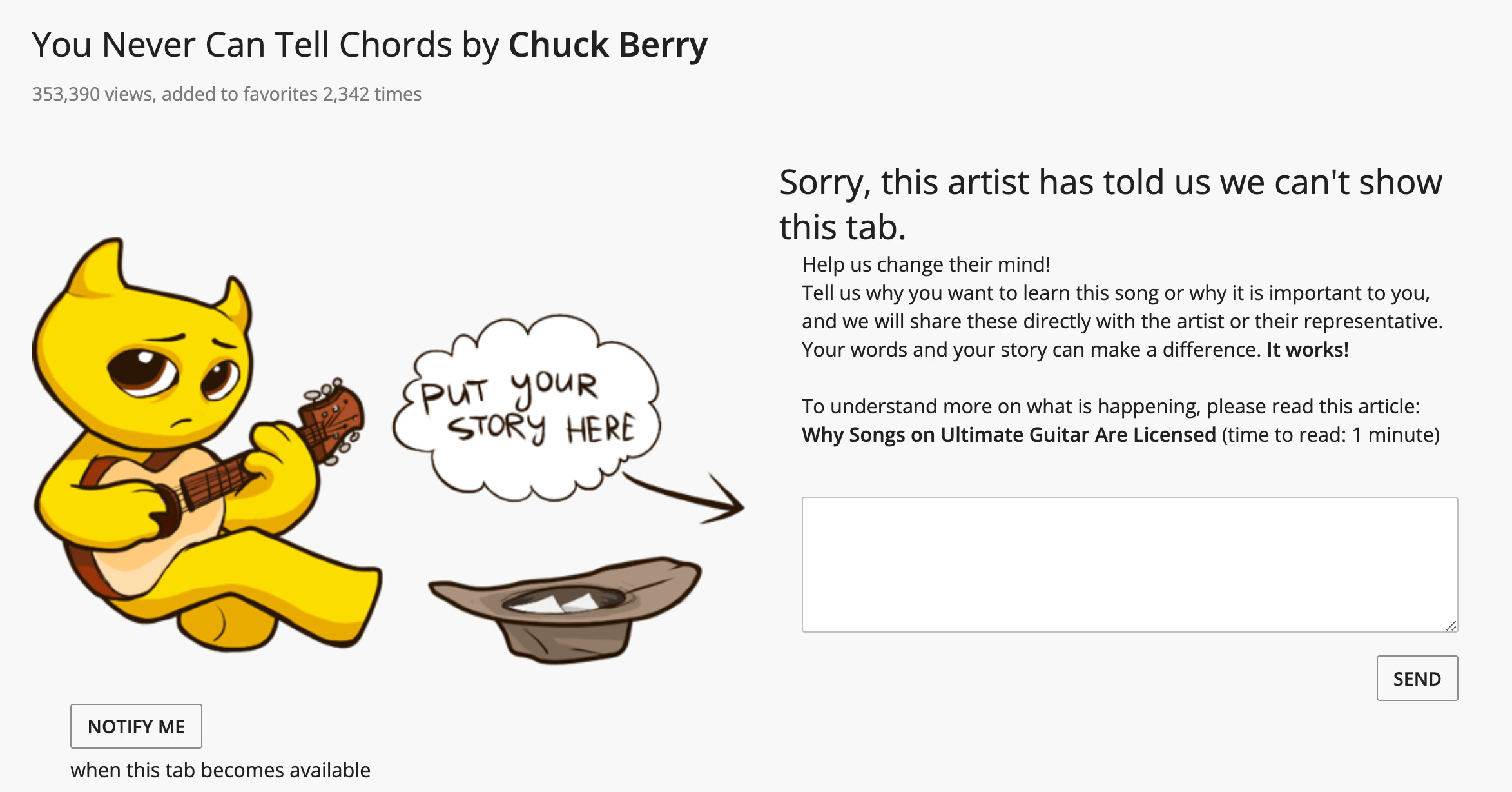 Unless all of these companies have struck deals with music publishers, they shouldn’t be displaying the music or lyrics to songs in most contexts. Permission must be granted. Fully licensed music-learning sites have licenses and compensate artists. When they lose those licenses, the tabs, lyrics, and chord progressions disappear.