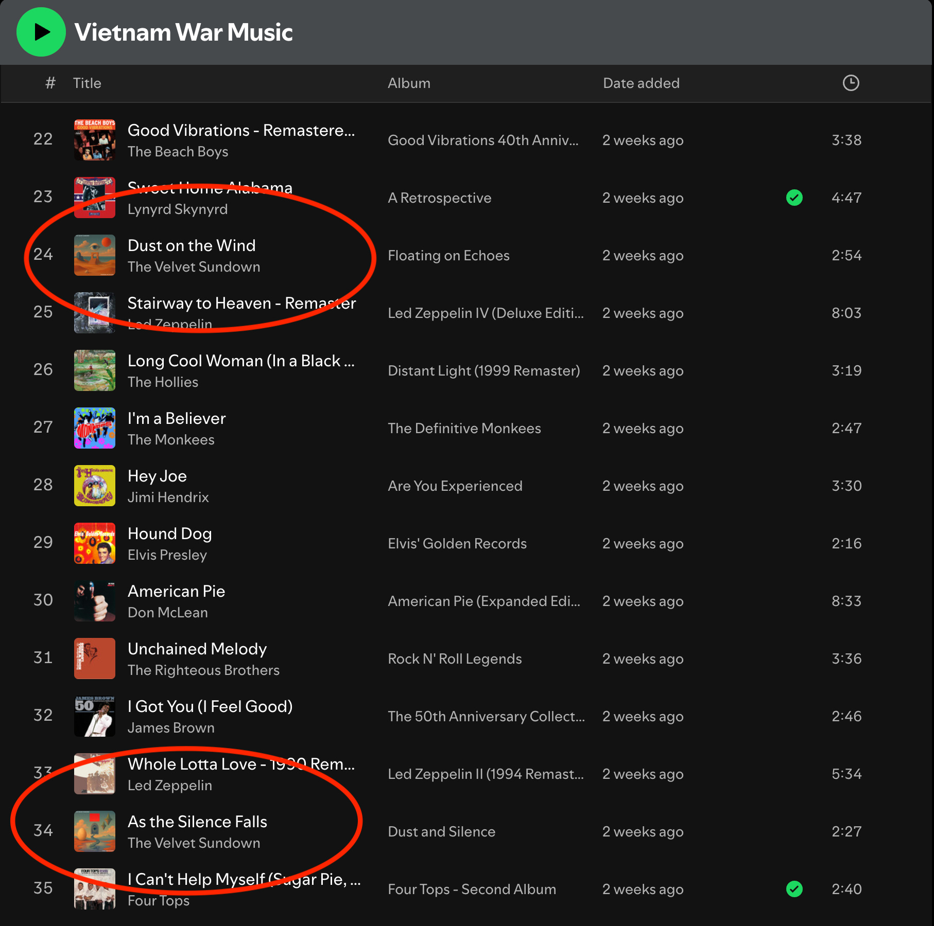 If you scroll down to the bottom of The Velvet Sundown’s page, you can see playlists they are featured on. The first playlist is “Vietnam War Music.” Most of songs on this playlist are what you’d expect: “Fortunate Sun” by Creedence Clearwater Revival, “Paint It, Black” by The Rolling Stones, and other songs from the late-1960s and early-1970s. But if you keep scrolling, you’ll notice assorted Velvet Sundown songs scattered throughout. That’s odd. All of their music seems to have been created decades after the last chopper left southeastern Asia.