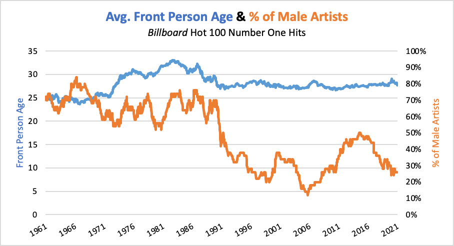 First off, the 1980s saw the oldest pop stars since the inception of the Hot 100 in 1958. Baldness, of course, is more of an issue for older people. Secondly, there are fewer male artists topping the Hot 100 these days. Baldness is less of an issue for women. These factors aside, the most important reason we see fewer balding pop stars is likely because those that are balding are getting hair restoration procedures done. Science has made a Phil-Collins-looking pop star a thing of the past.