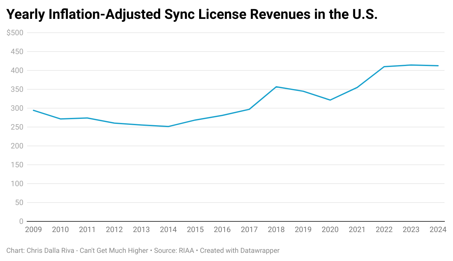 According to the RIAA, sync revenues in the U.S. have doubled from $200 million to $400 million in the last 15 years. Why do you think that’s happened?