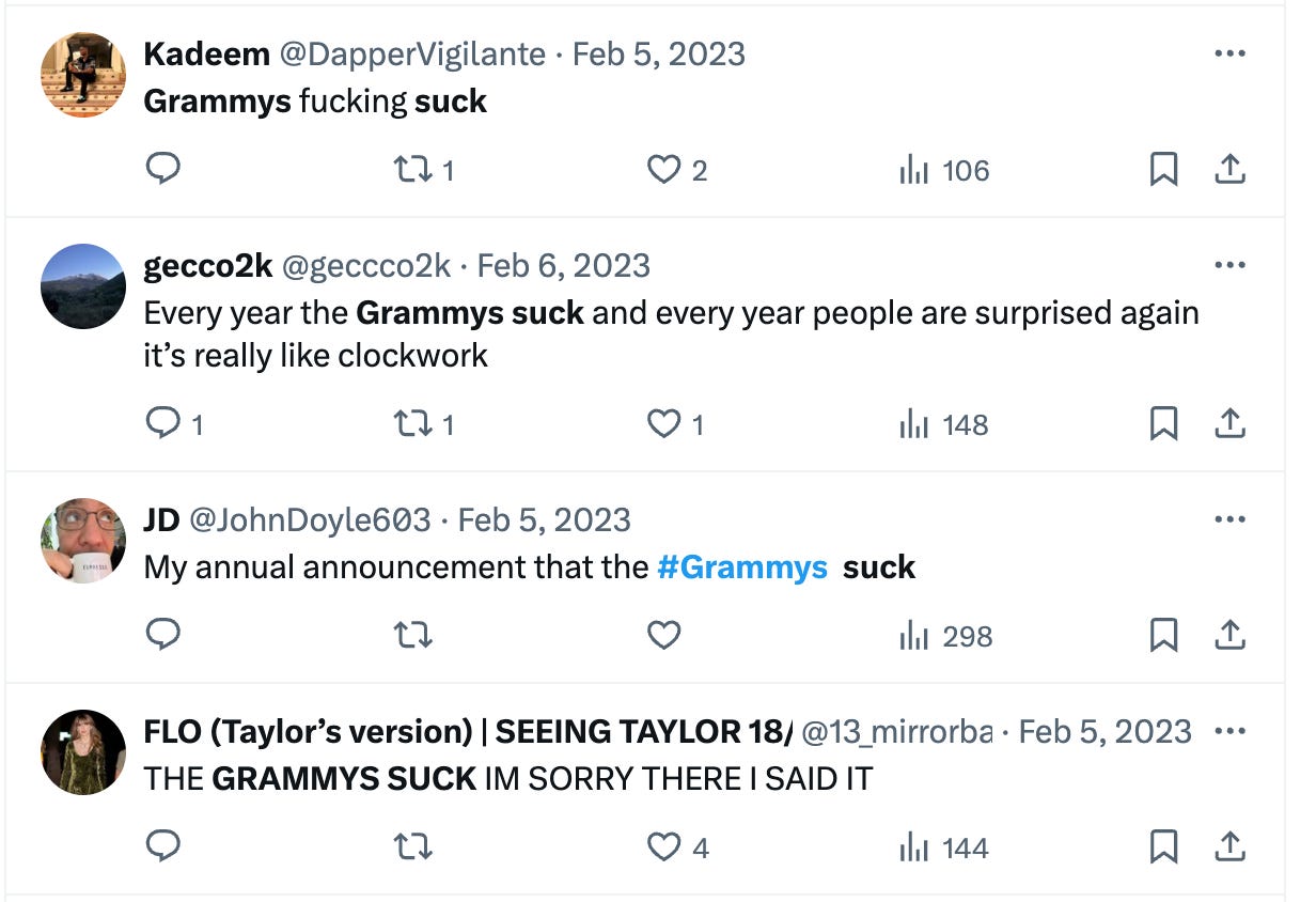 The same thing happens every year when the Grammy Awards roll around. The nominations are announced. People complain about how The Recording Academy got them exactly wrong. Then the winners are announced. And people subsequently exclaim that the Grammys suck!