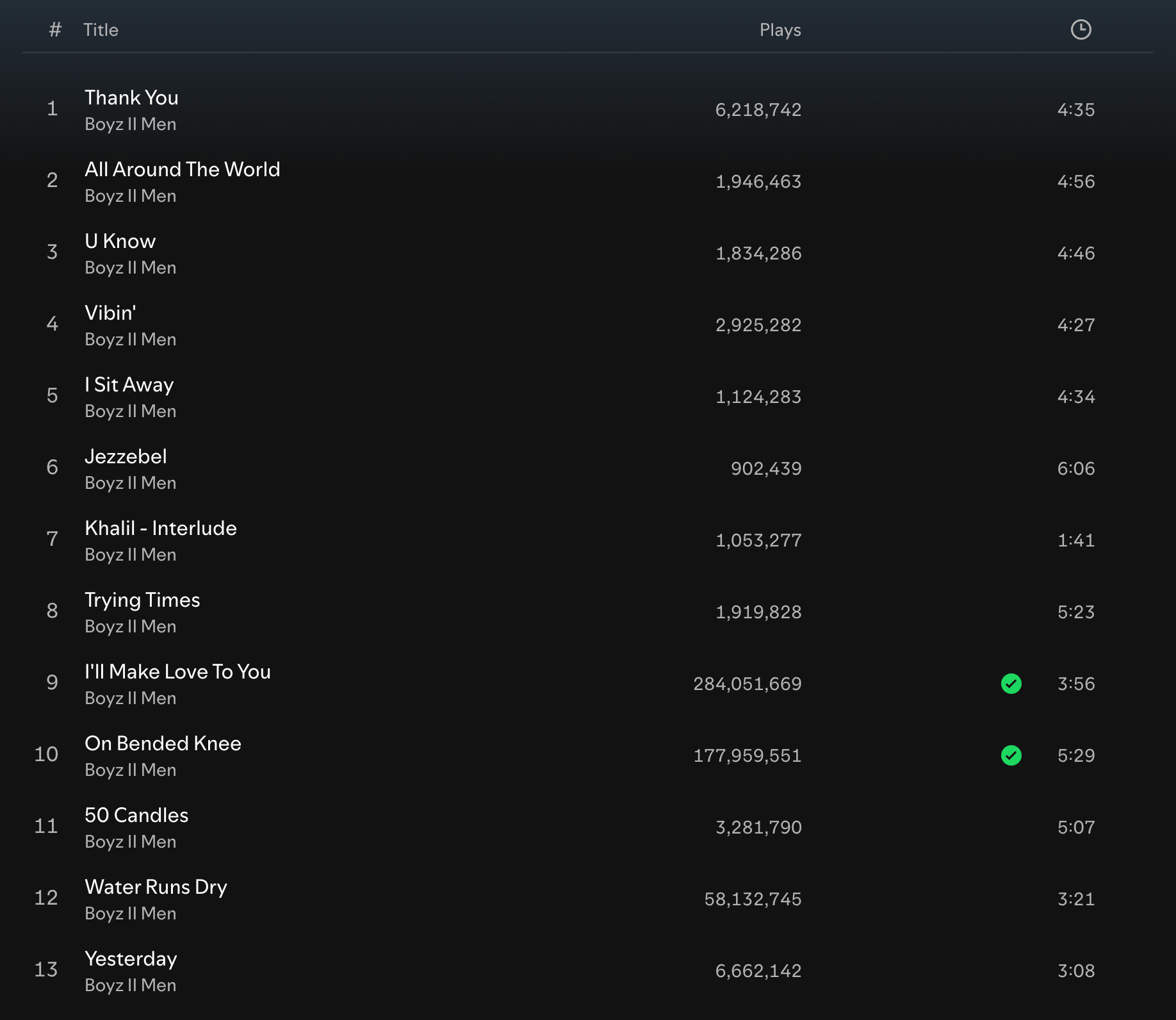If you look at the play counts across the album, you’ll see how this makes “I Sit Away” much less valuable these days. It only accounts for 0.21% of the album’s nearly 550 million streams. The math is a bit more complicated here, but I’m almost certain that Tony Rich would not be getting a near-million dollar mechanical royalty payout had II come out last year.