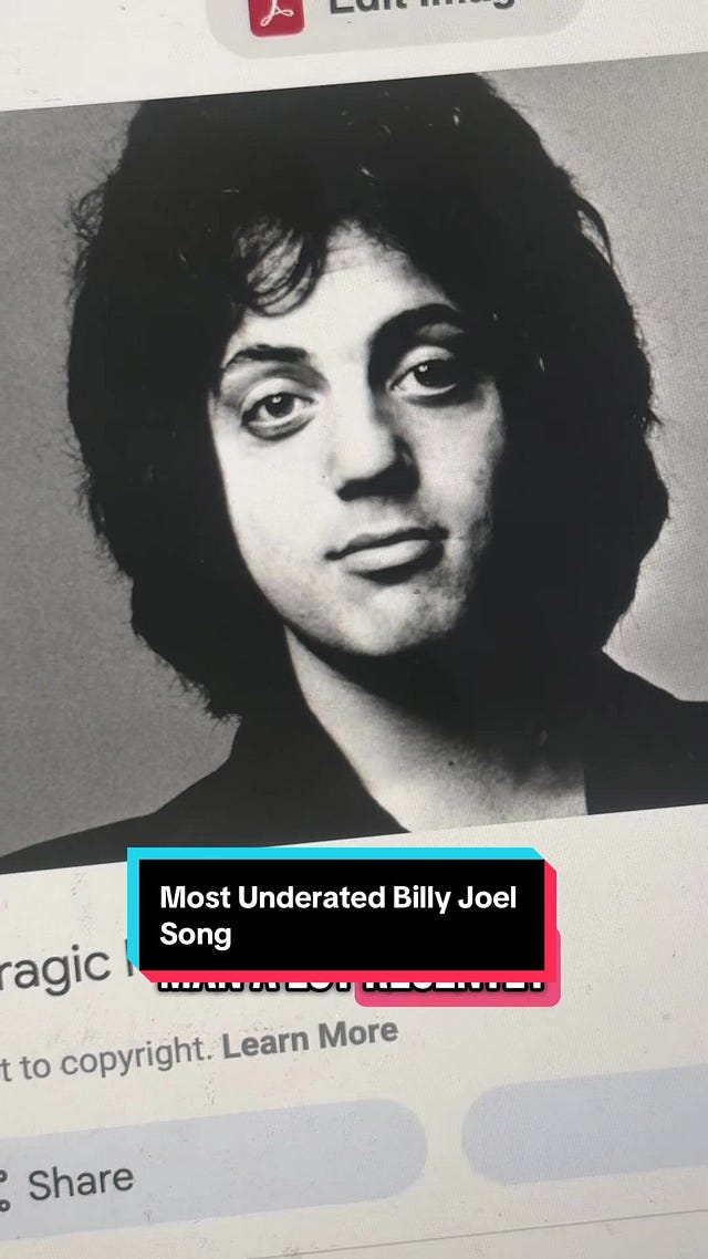 and I also had a long conversation about it last week if you still need more to sate your Joel fix.)As I watched, I began to have an internal debate about what the most underrated Billy Joel song is. Naturally, I tried to figure this out with some data. I posted the results on TikTok, with the “Sleeping with the Television On” and “Miami 2017 (Seen the Lights Go Out on Broadway,” coming in as his most underrated recordings.