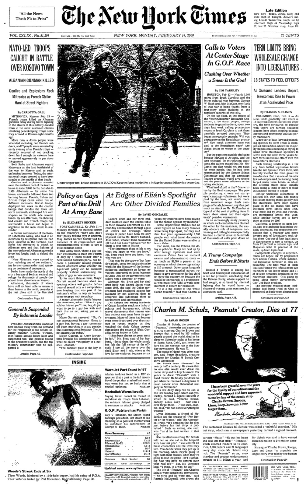 And he did! Schulz not only made the front page of The New York Times when he died, but he got a massive two-page spread inside. The Landry and Hawkins obituaries both shared part of page 32.