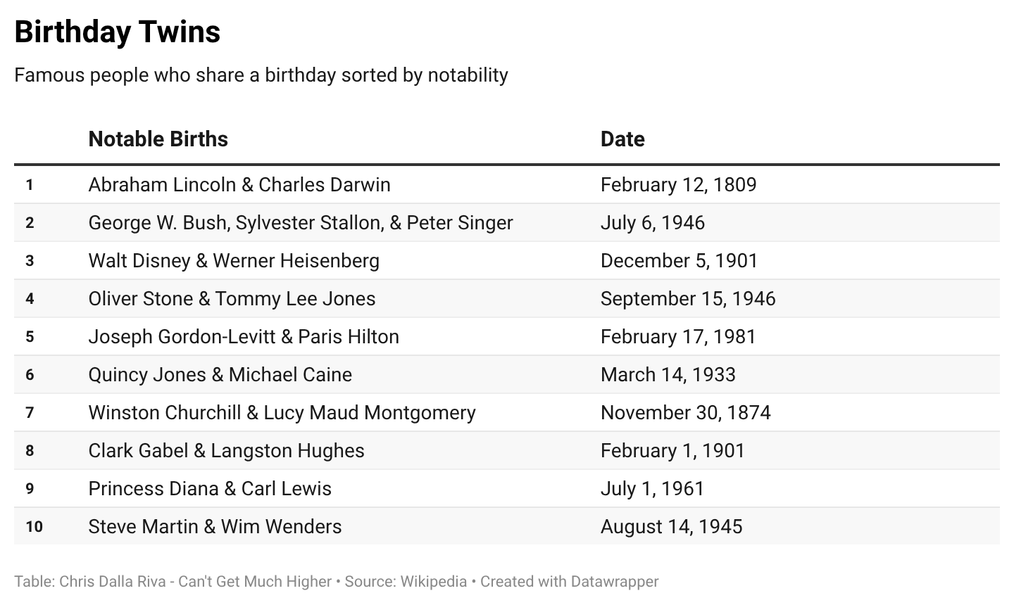 But it can also grow a bit more on certain days. In order to end this somewhat grim piece on a lighter note, I thought I should highlight times when notable people were born on the same day.