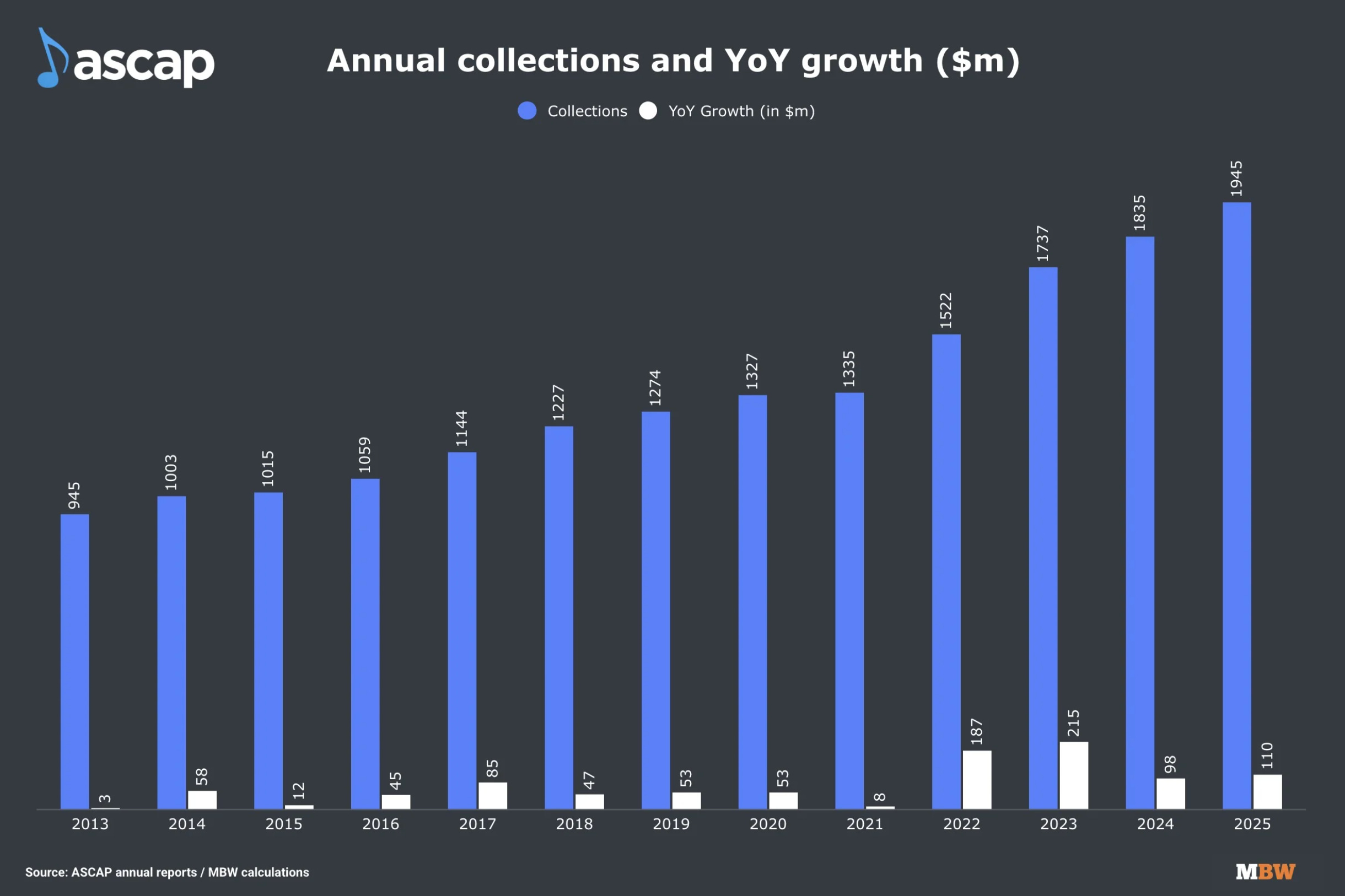 Oh, yeah, ASCAP also reported record revenues of $1.9 billion in 2025. $1.7 billion, or 90%, were distributed to songwriters. That’s a 3.7% increase from 2024. I guess everyone is getting paid for their music. Well, not me, but everyone else.